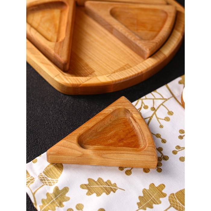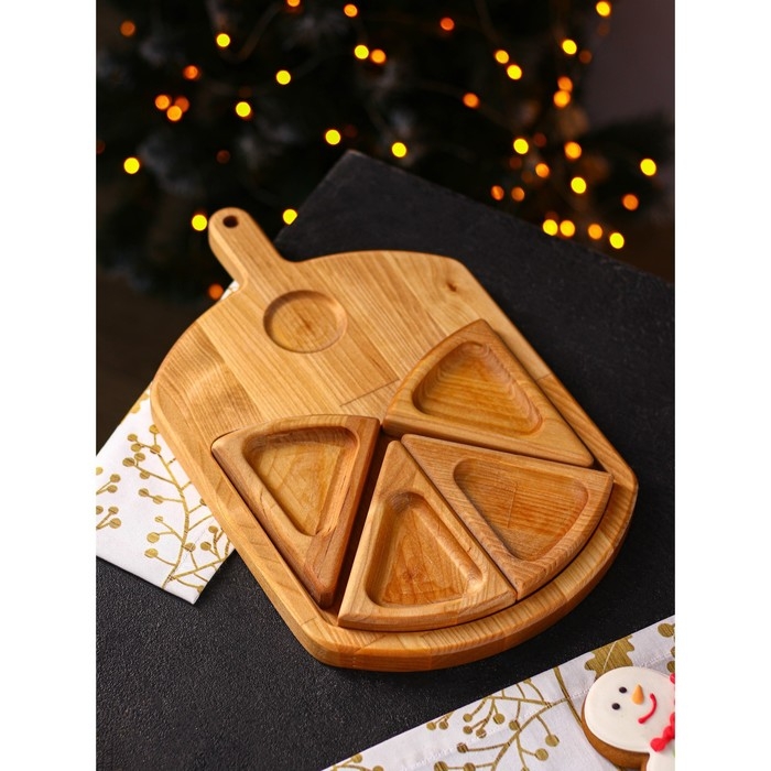 Подарочный набор деревянной посуды Adelica «Сырная мозайка», доска разделочная 35×22 см, менажницы 4 шт, 12,5×9 см, берёза