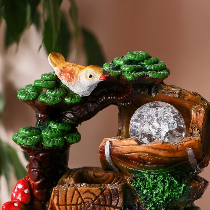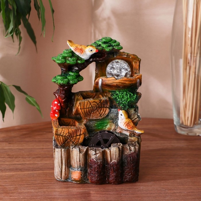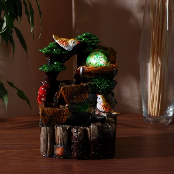 Фонтан "Птички на бревнах" 10х14х19 см (с подсветкой)