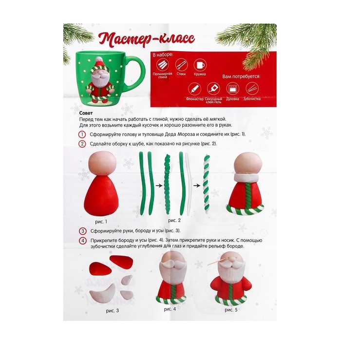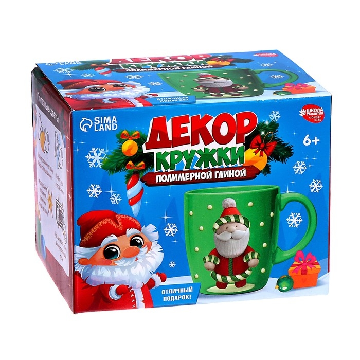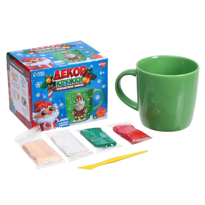 Декор кружки полимерной глиной на новый год «Дед Мороз», 300 мл, новогодний набор для творчества