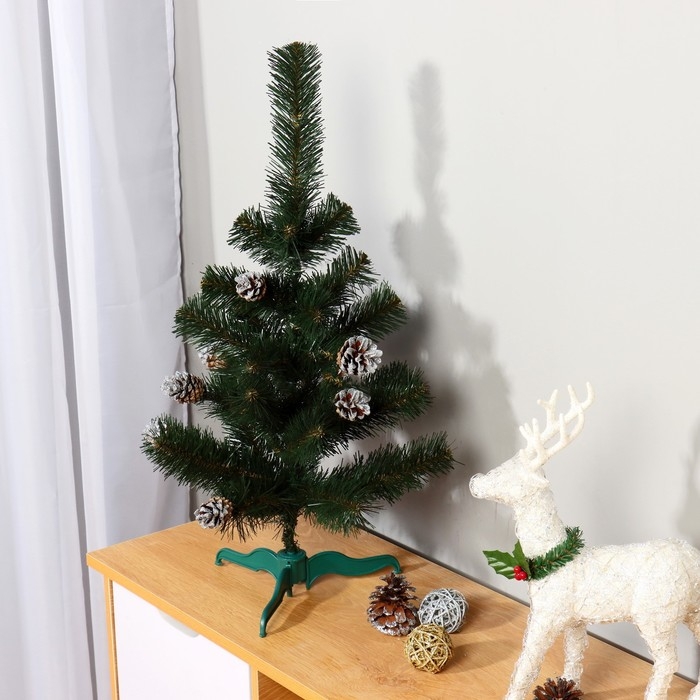 Ёлка искусственная настольная "Рождественская" (шишки серебро) 60 см