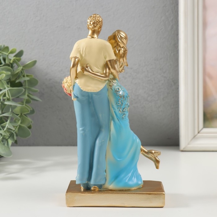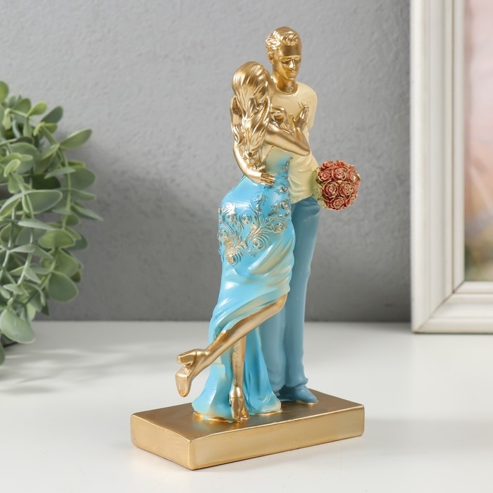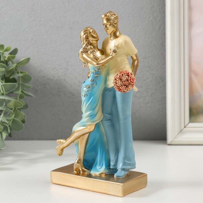 Сувенир полистоун "Нежная встреча" бело-голубой 6х8х19,5 см