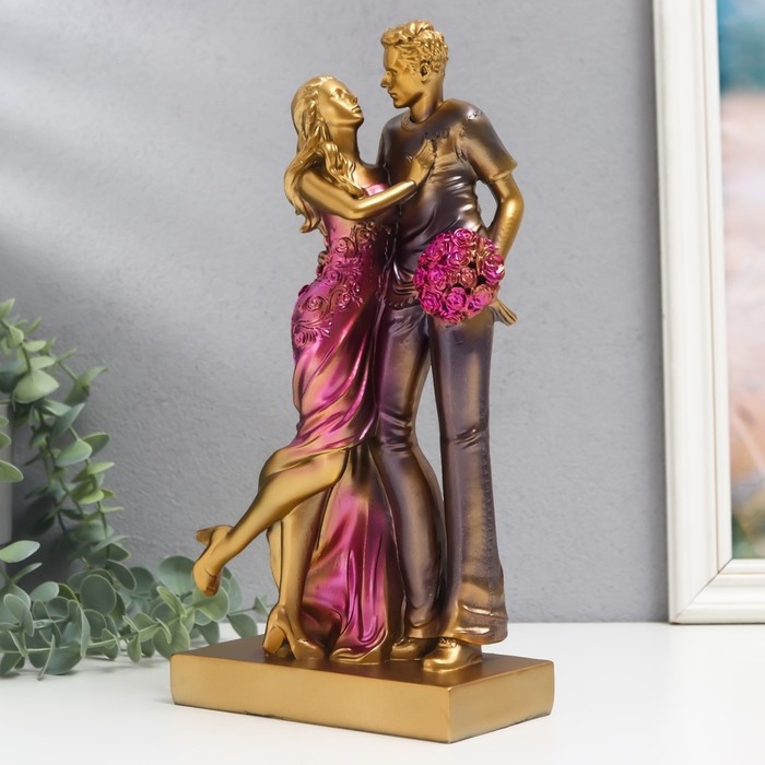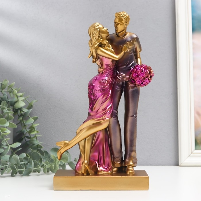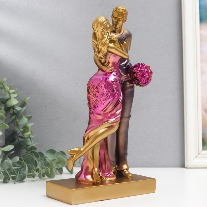 Сувенир полистоун "Нежная встреча" розово-фиолетовый 7х14,5х28 см