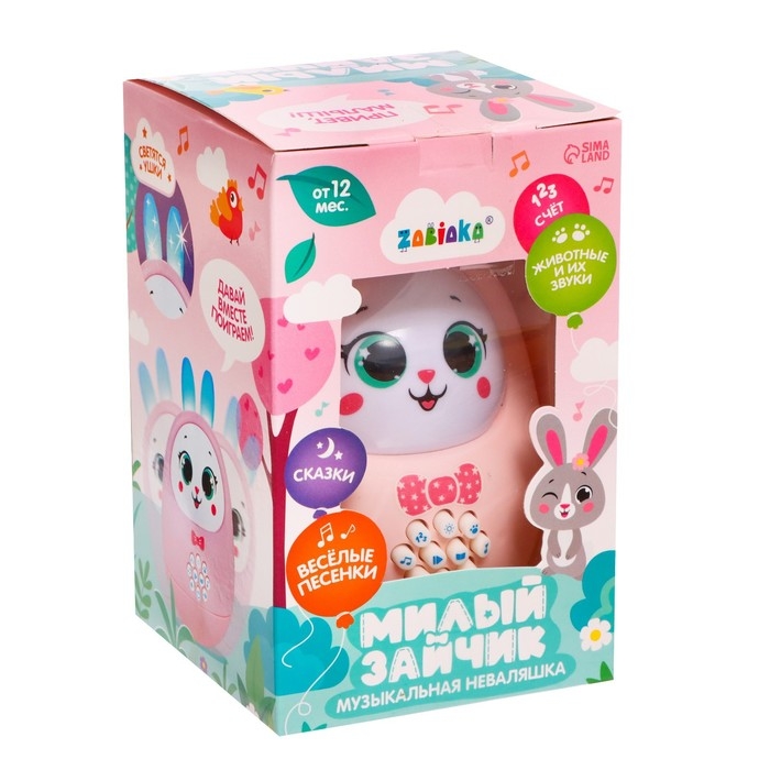Музыкальная неваляшка «Милый зайчик», звук, свет, цвет розовый