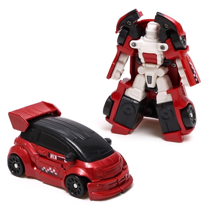 - Размер красного робота: 10 × 5,2 × 4,8 см. В виде машинки: 7 × 4,8 × 10 см.