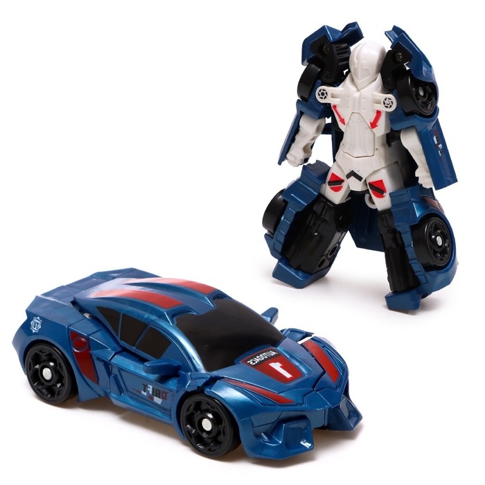 - Размер синего робота: 10 × 5,2 × 3 см. В виде машинки: 6,8 × 3 × 10 см.