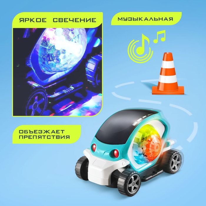 Машина «Диско», диско-шар, световые и звуковые эффекты, работает от батареек, цвет бирюзовый