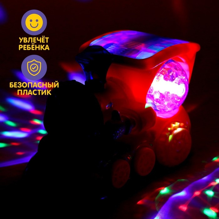 Паровоз «Диско», диско-шар, световые и звуковые эффекты, работает от батареек, цвет красный
