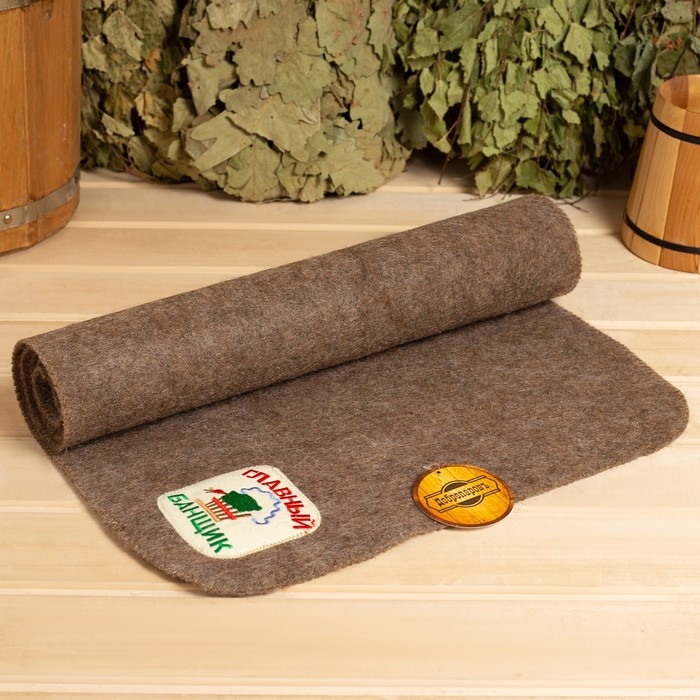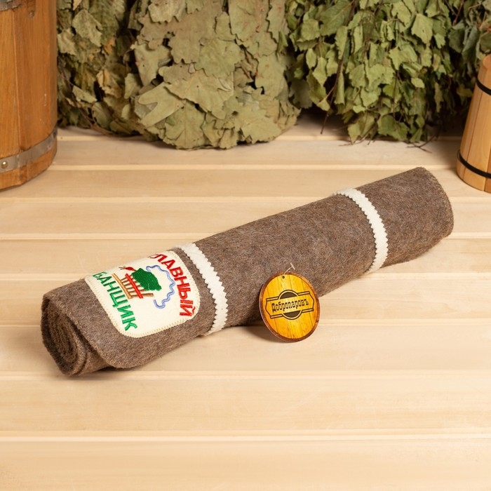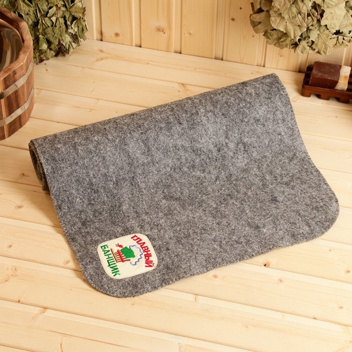 Лежак для бани темный с вышивкой "Главный банщик" 150х50 см