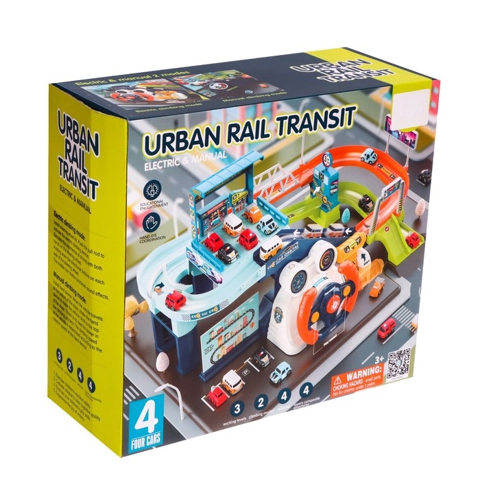 Парковка-автотрек «Город», с 4 машинами, свет и звук, работает от батареек