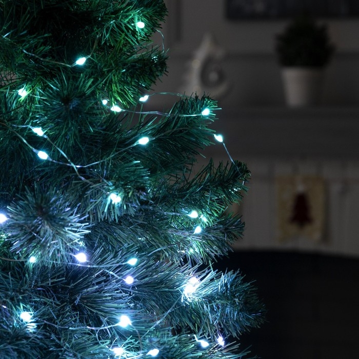 Умная гирлянда «Нить» 10 м роса, IP20, серебристая нить, 100 LED, управление с приложения, свечение RGB, USB