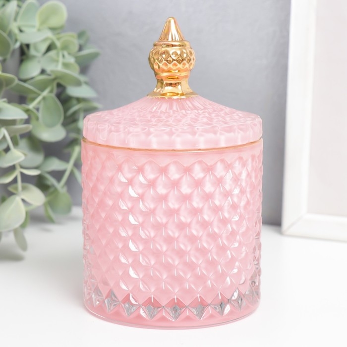 Шкатулка стекло "Ромбы и купол" розовый с золотом 14х8,2х8,2 см