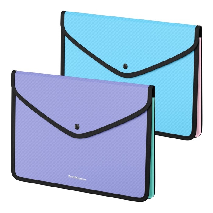 Папка-конверт на кнопке А4, 600 мкм, ErichKrause Diagonal Pastel, обшитая, с текстильной вставкой, непрозрачный, с расширением, микс