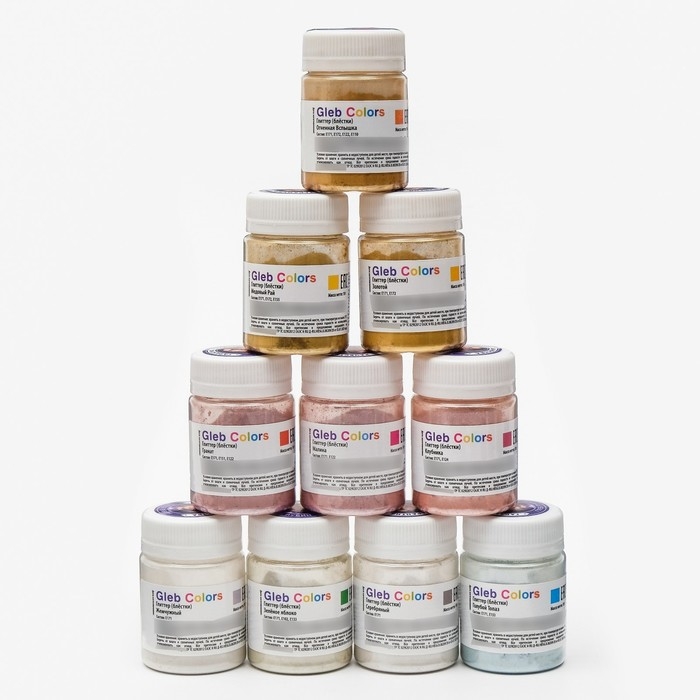Глиттер, блестки пищевые, глиттер пищевой можно использовать, чтобы придать Вашим изделиям блеск и перламутровый цвет различных оттенков. Глиттеры Gleb Colors изготавливаются из безопасных пищевых ингредиентов, их уникальный состав и структура позволяют получить переливающийся эффект.