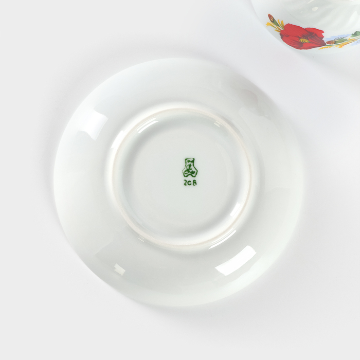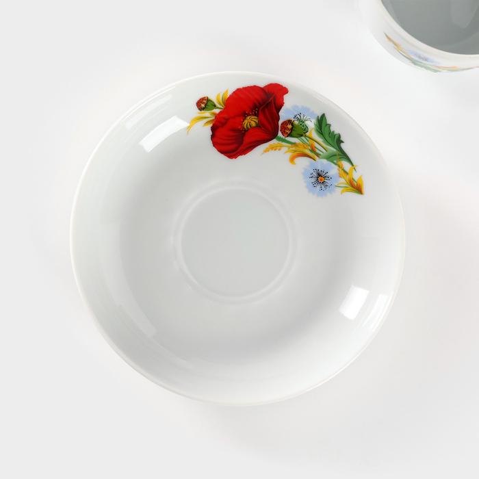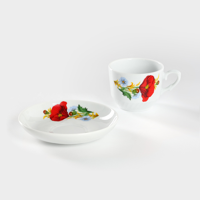 Чайная пара фарфоровая «Маки красные», 250 мл, блюдце d=15 см
