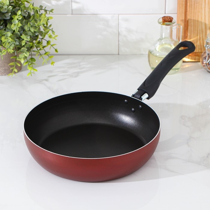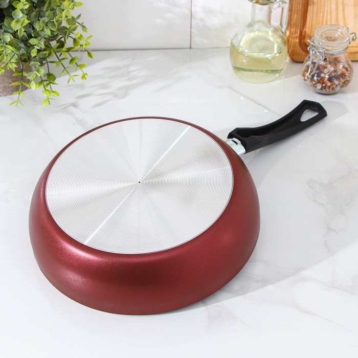 Сковорода Доляна Promo, d=22 см, h= 5 см, пластиковая ручка, антипригарное покрытие, цвет бордовый