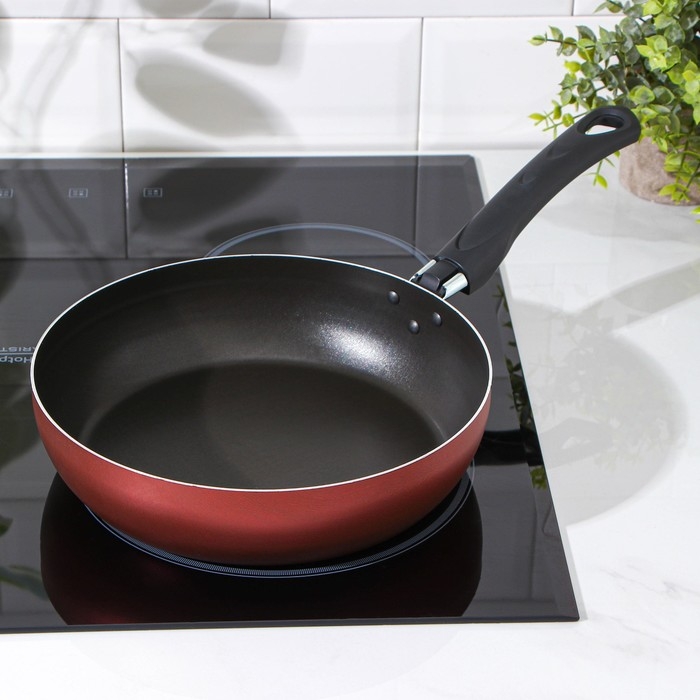 Сковорода Доляна Promo, d=24 см, пластиковая ручка, антипригарное покрытие, цвет бордовый