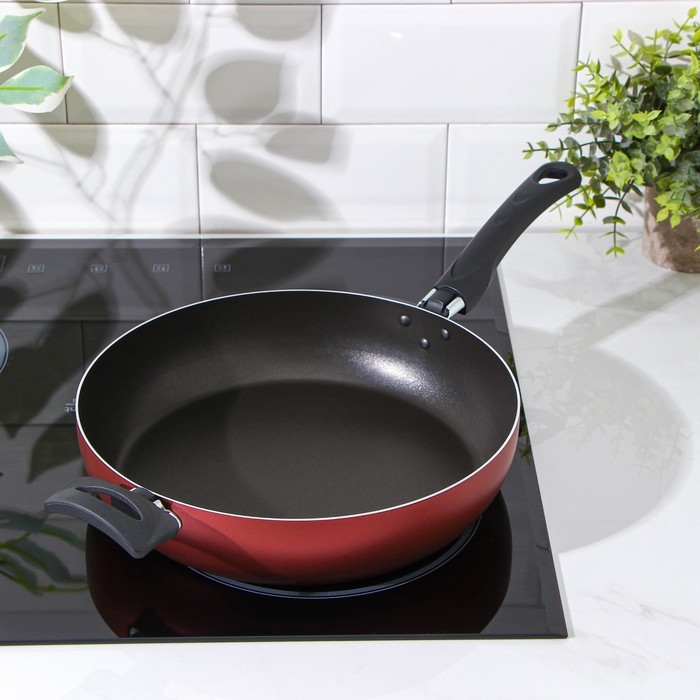 Сковорода Доляна Promo, d=28 см, пластиковая ручка, антипригарное покрытие, цвет бордовый