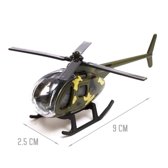 - Размер вертолёта: 9 × 2,5 × 4 см. Можно достать из кузова и играть отдельно.