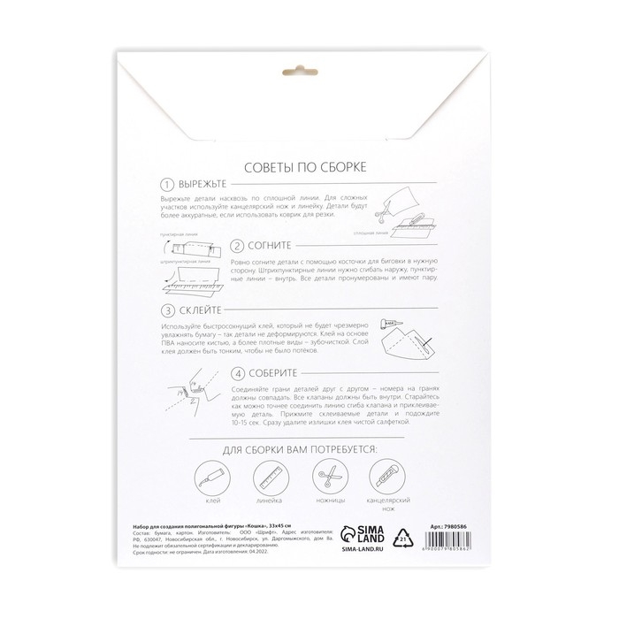 Полигональная фигура из бумаги «Кошка», 35 х 40 х 12 см