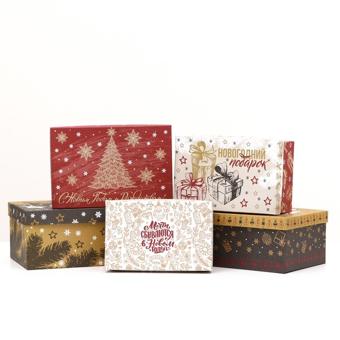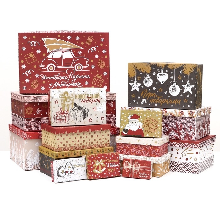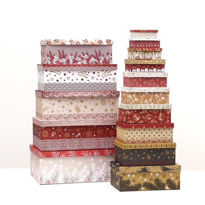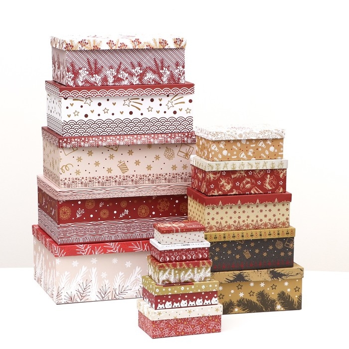 Набор подарочных новогодних коробок 15 в 1 "Изысканность", 47,5 х 35,5 х 17,5 - 12 х 7 х 4 см. Новый год