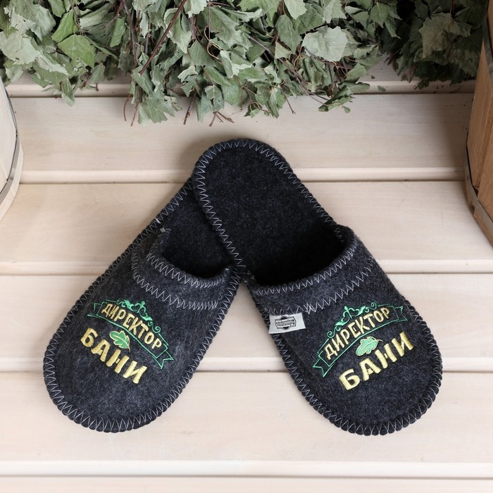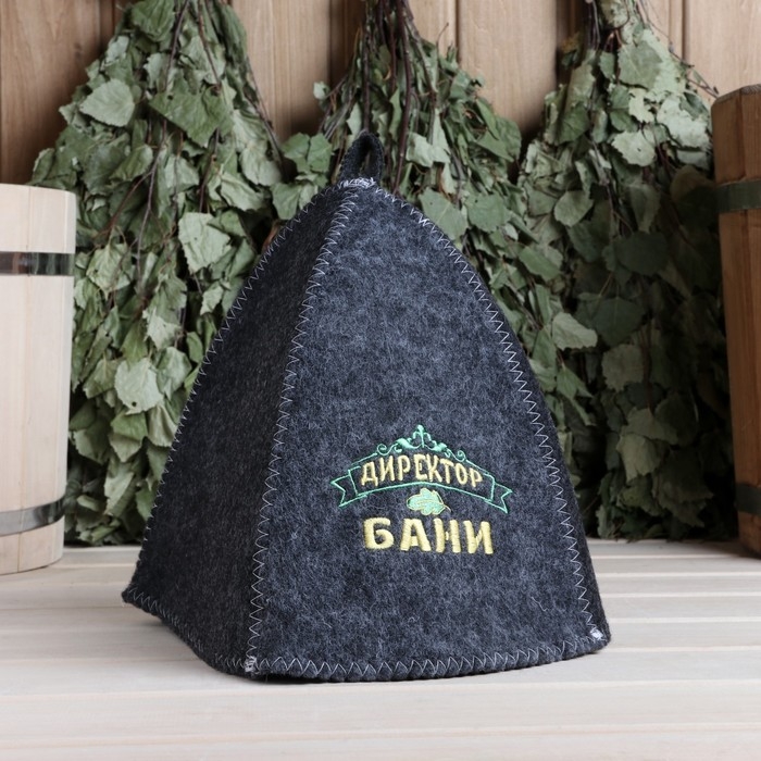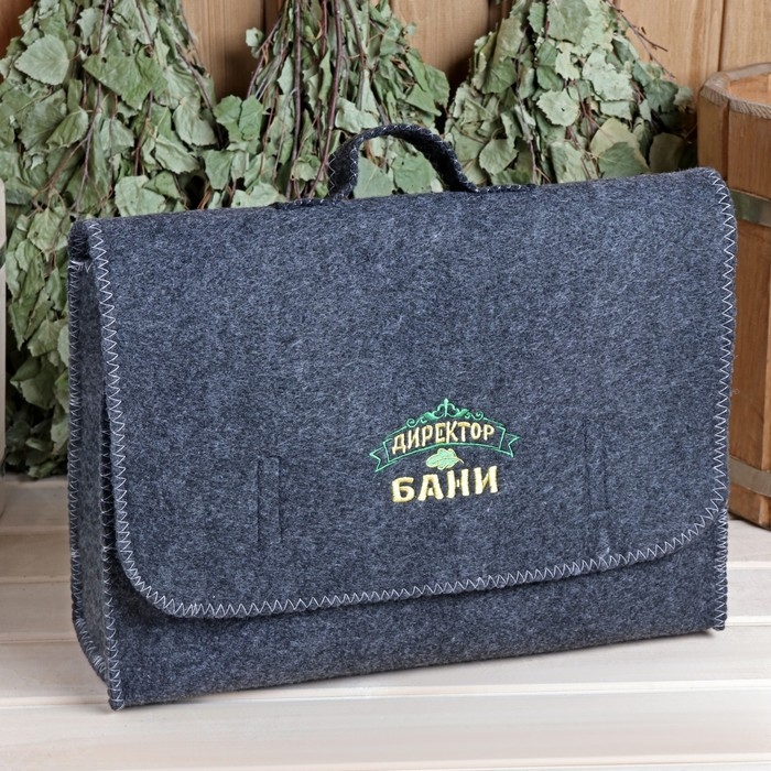 Набор для бани 5 предметов (портфель, шапка, тапочки "Директор бани", варежка, коврик) серый