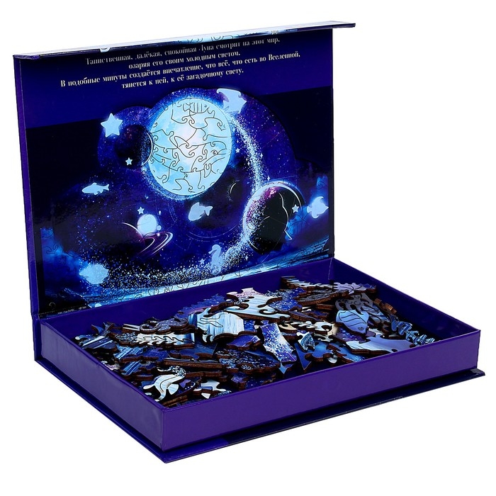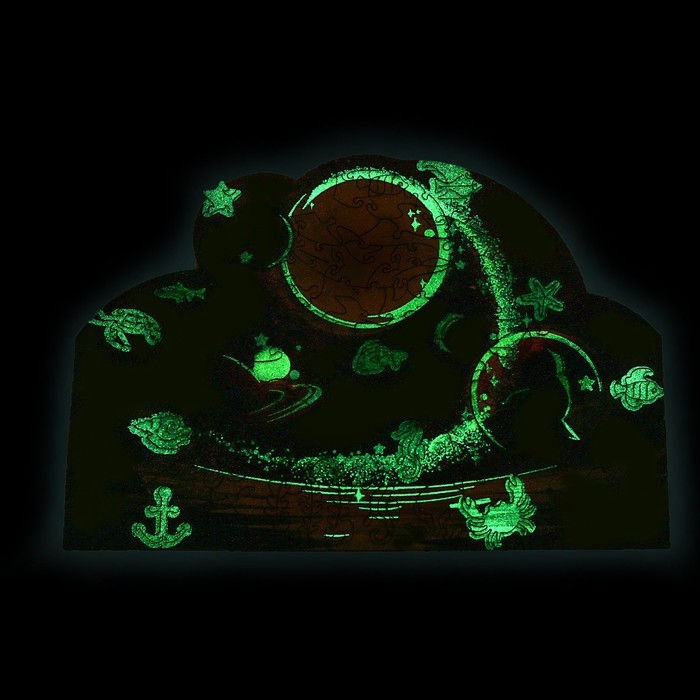 Это не просто пазл, а волшебная игра-головоломка! Достаточно выключить свет в комнате, и вы увидите, как собранная картинка благодаря особой краске начнёт светиться в темноте.