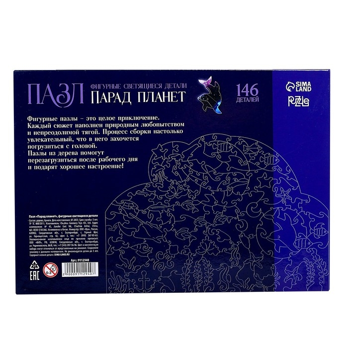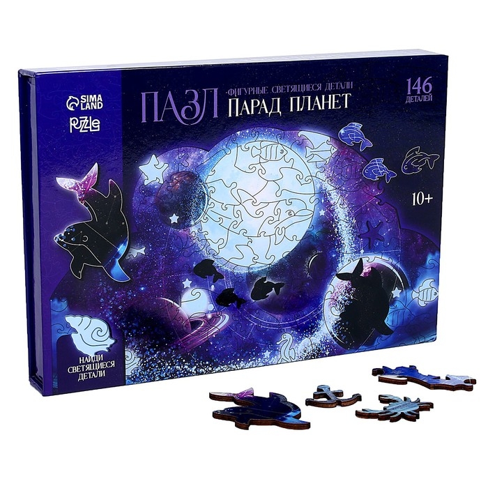 Пазлы деревянные фигурные «Парад планет» светящиеся, 145 элементов