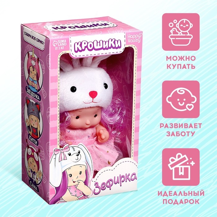 Пупс коллекционный «Крошики: Зефирка», в костюме зайчика, 19 см