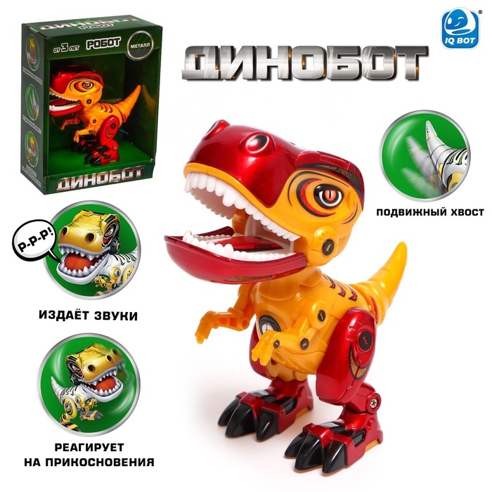 Робот «динозавр Динобот», интерактивный: реагирует на касания, световые и звуковые эффекты, на батарейках, жёлтый