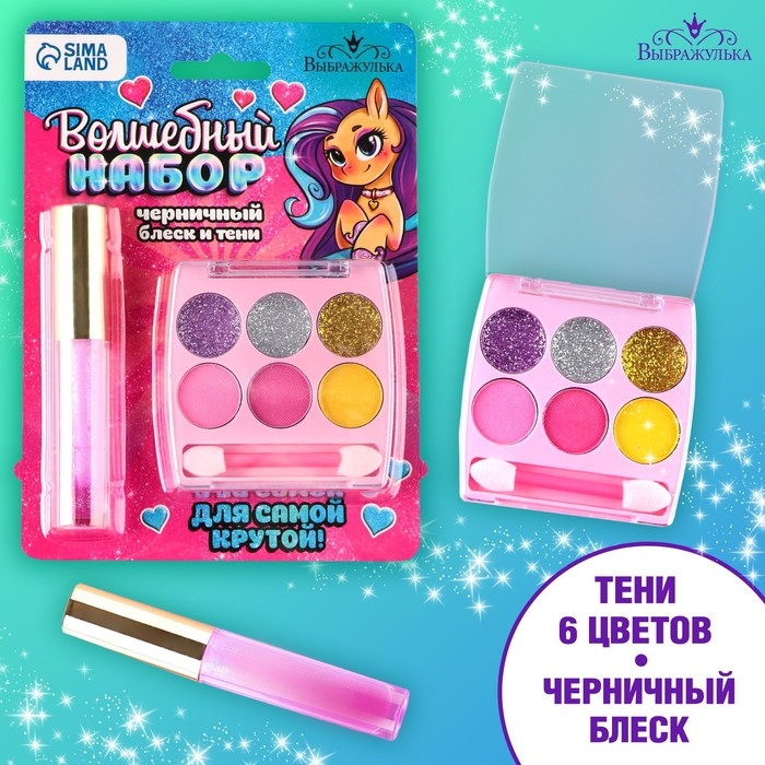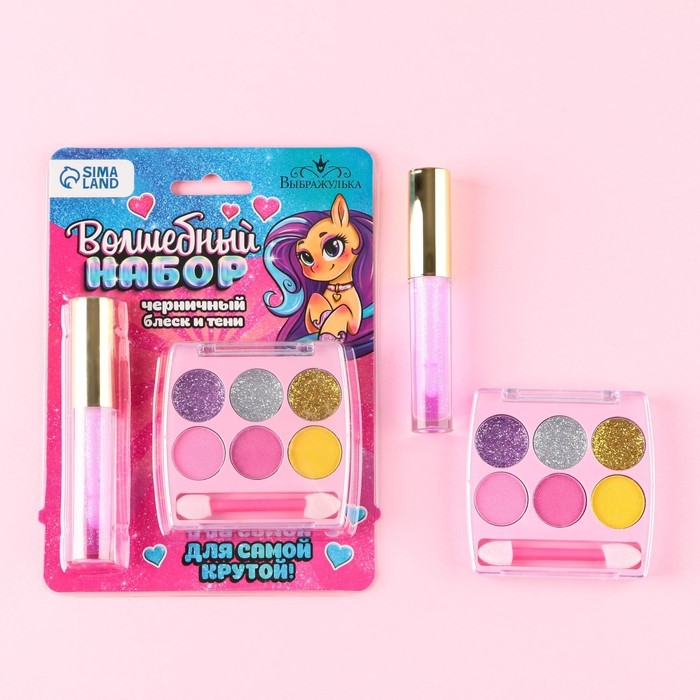 Набор косметики «Для самой крутой», блеск 8 мл, тени 6 цв, аромат черника