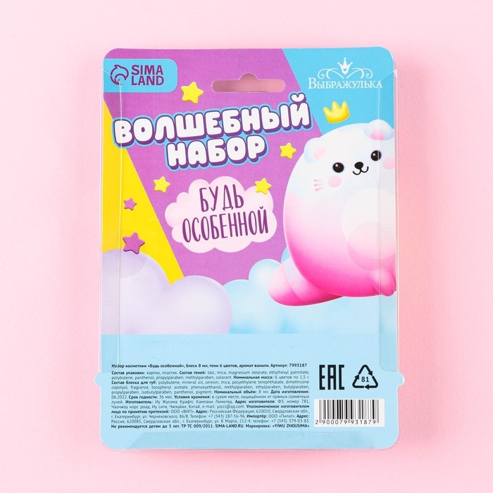 Набор косметики «Будь особенной», блеск 8 мл, тени 6 цв, аромат ванили