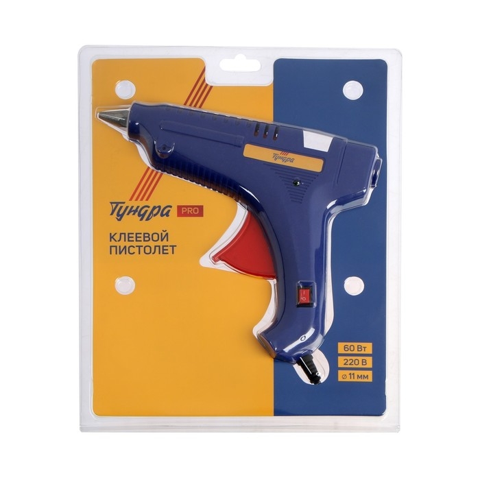 Клеевой пистолет ТУНДРА ВДОМ, 60 Вт, 220 В, выключатель, индикатор, антикапля, 1.2 м, 11 мм