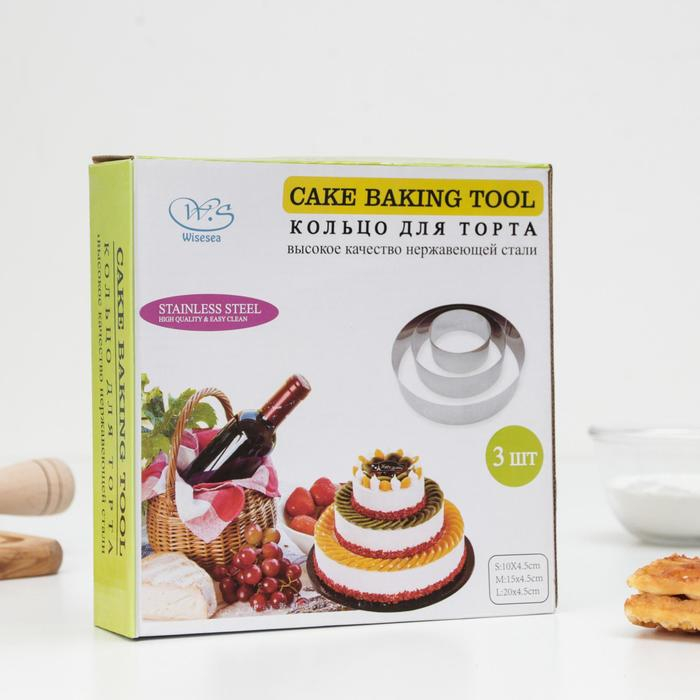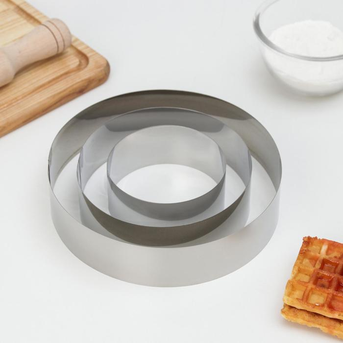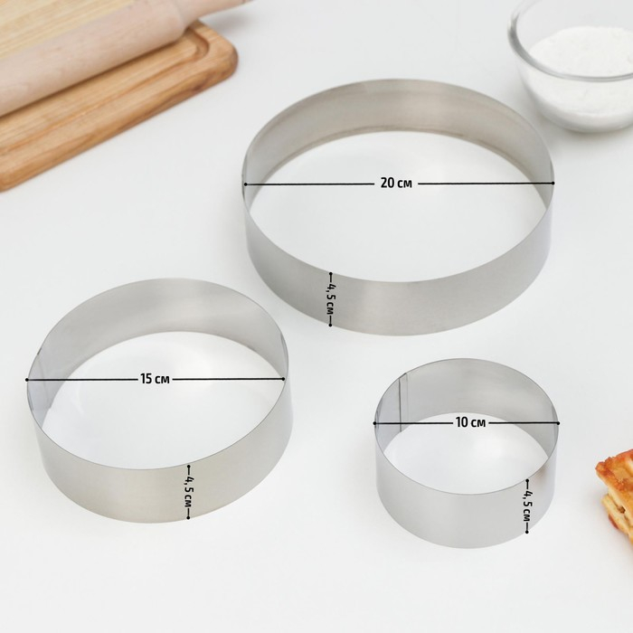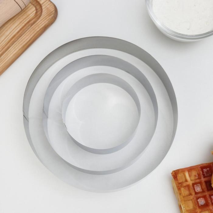 Набор форм для выкладки и выпечки «Круг», 3 шт, d=10, 15, 20 см, высота 4,5 см, цвет серебристый