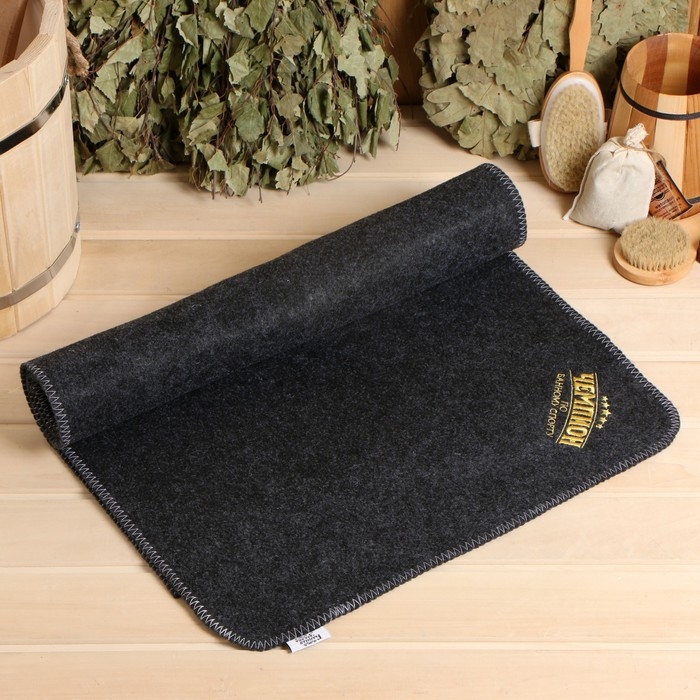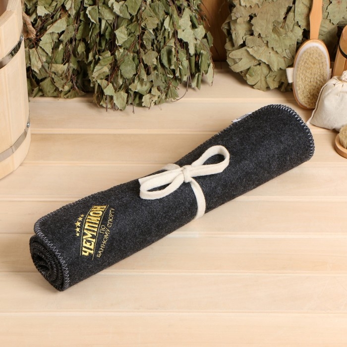 Лежак для бани темный с вышивкой "Чемпион по банному спорту" 145х50 см