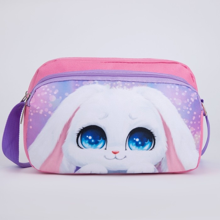 Сумка детская текстильная, 2 кармана, 22х14х6см, "Зайка с цветами"