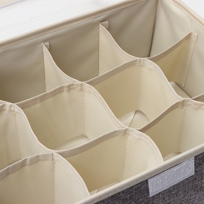 Органайзер для хранения белья LaDо́m «Франческа», 9 ячеек, с крышкой, 35×30×12 см, цвет бежевый