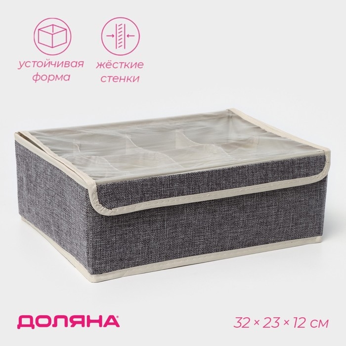 Органайзер для хранения белья Доляна «Тео», 12 ячеек, с прозрачной крышкой, 32×23×12 см, цвет серый