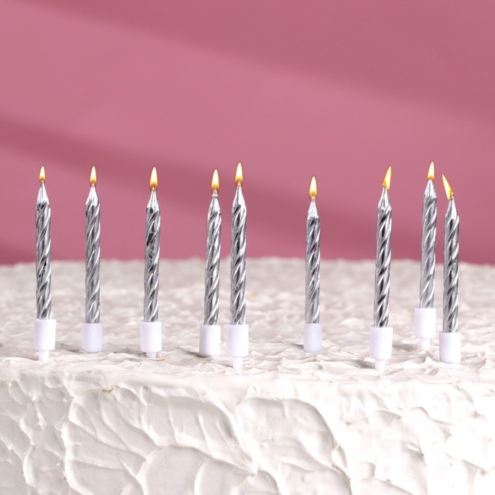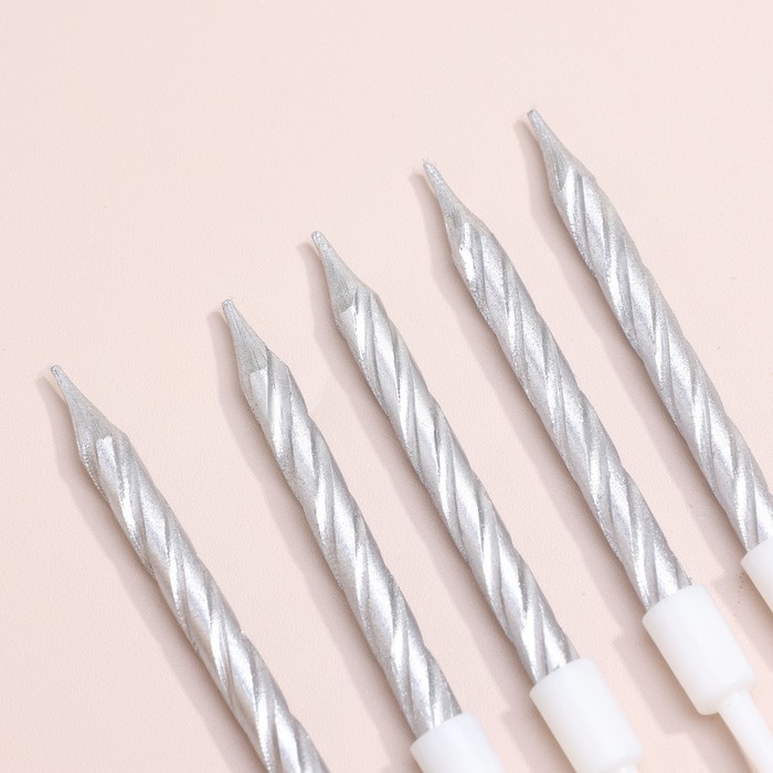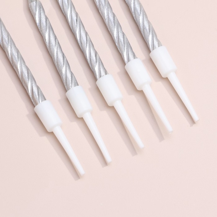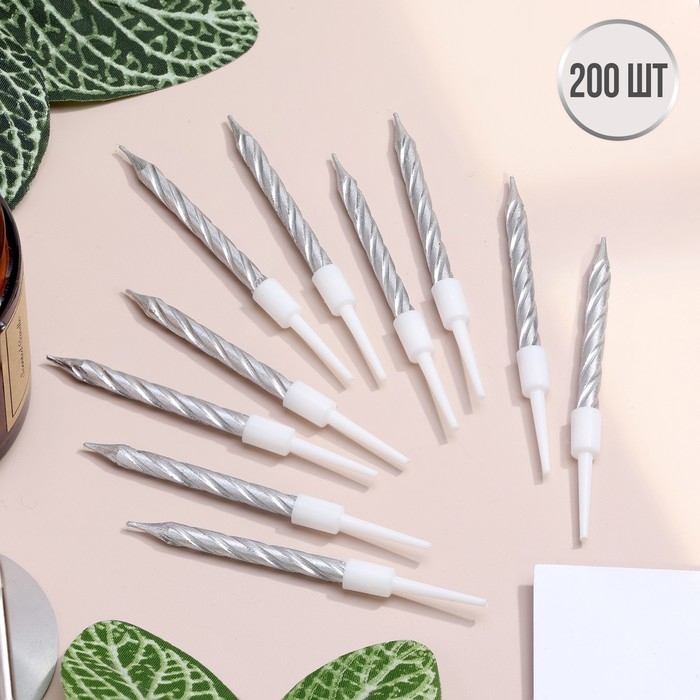 Набор свечи в торт "Спираль", 200шт, 5 см, серебряный металлик