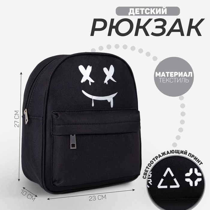 Рюкзак школьный текстильный c карманом «Х Х», светоотр. элементы, 27х23х10 см