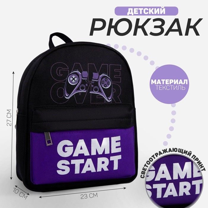 Рюкзак школьный текстильный c карманом «Джойстик», светоотр. элементы, 27х23 х 10 см