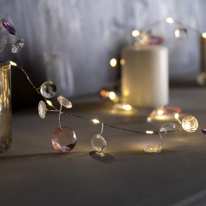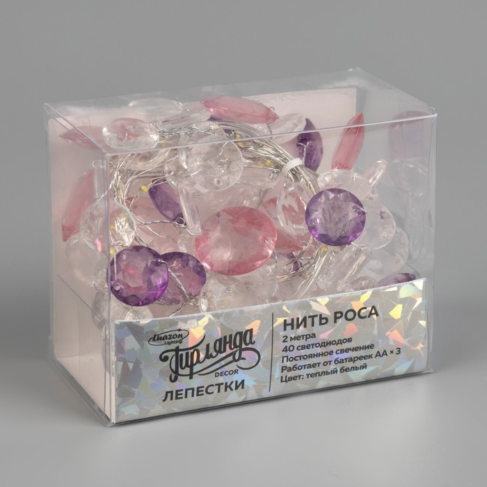 Гирлянда «Нить» 2 м роса с насадками «Лепестки», IP20, серебристая нить, 40 LED, свечение тёплое белое, ААх3