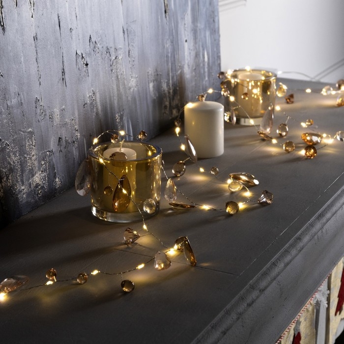 Гирлянда «Нить» 2 м роса с насадками «Золотистые лепестки», IP20, серебристая нить, 40 LED, свечение тёплое белое, ААх3