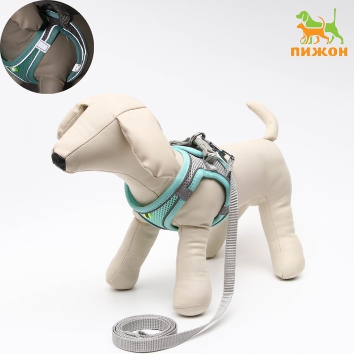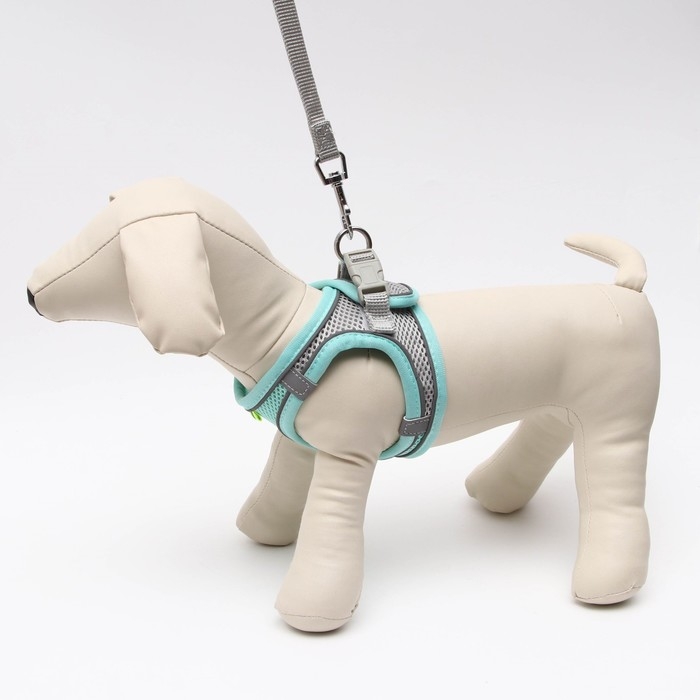 Комплект с мягкой шлейкой, быстросъемный, M, поводок 150 х 1,5 см, ОШ 38-44 см, ОГ 44-50 см, бирюз