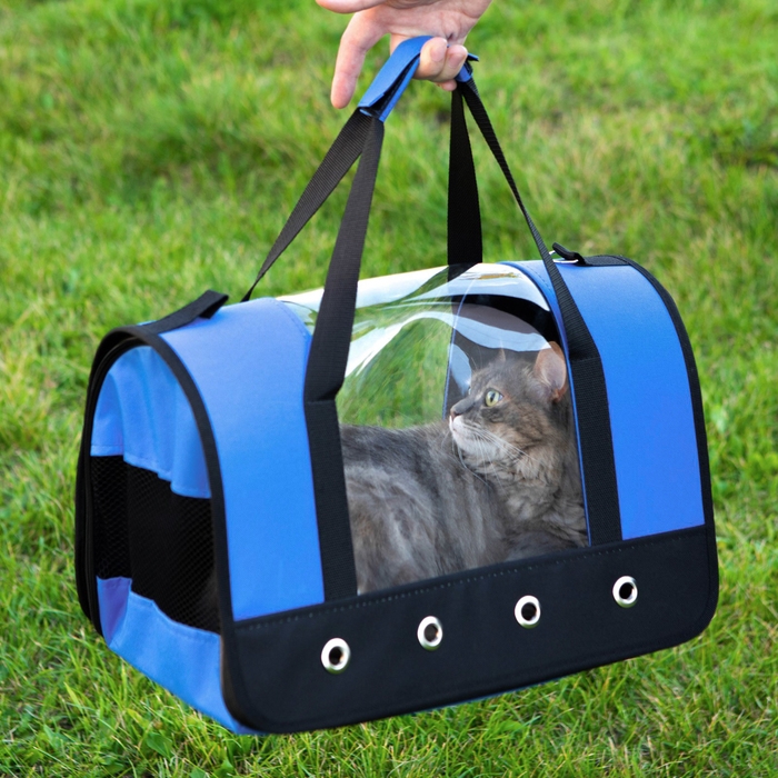 Сумка - переноска для животных "Панорамная", с окном, 46 х 28,5 х 30 см, синяя