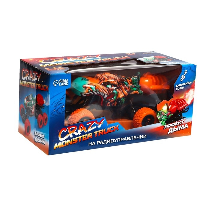 Джип радиоуправляемый MONSTER, 1:16, эффект дыма, световые эффекты, работает от аккумулятора, цвет оранжевый
