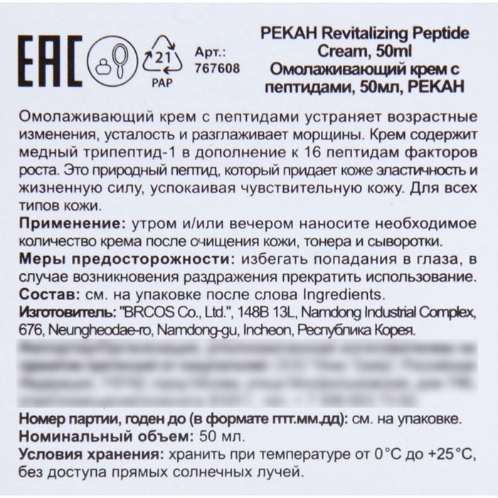 Омолаживающий крем для лица Pekah с пептидами, 50 мл