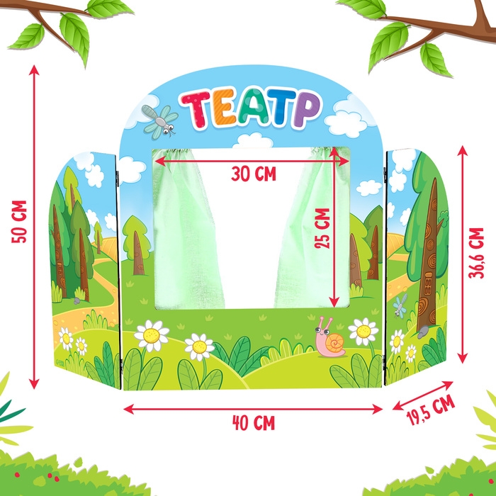 Ширма для кукольного театра с декорациями, дерево, 70 × 55 см