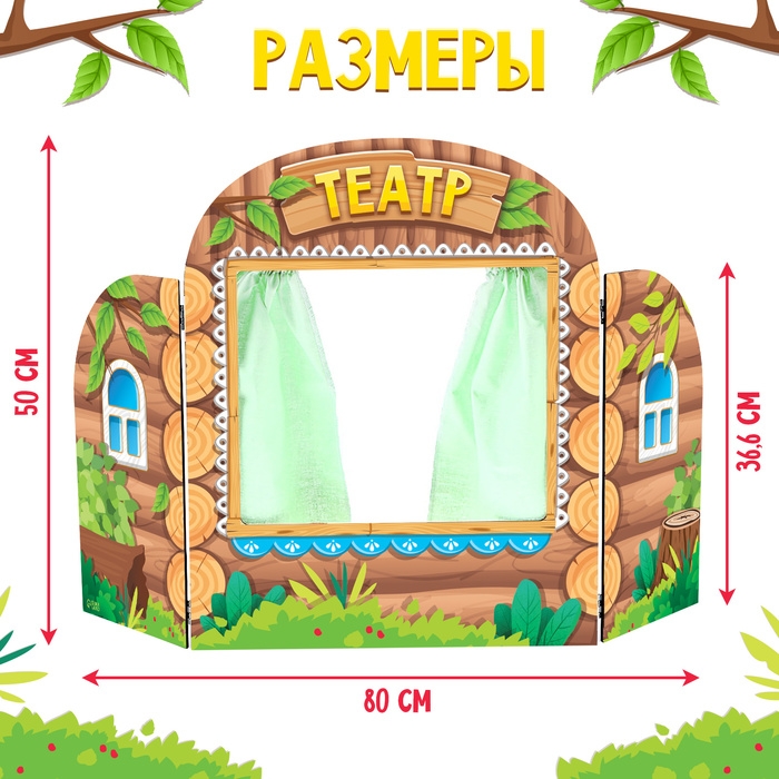 Ширма для кукольного театра с декорациями, дерево, 70 × 55 см