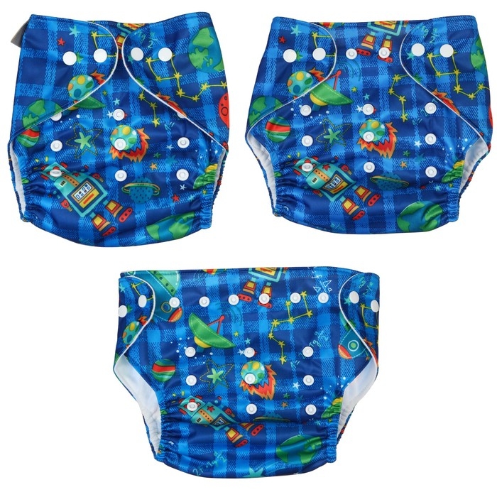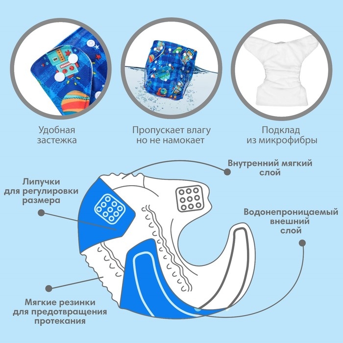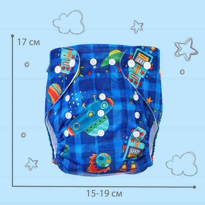 Многоразовый подгузник «Космос», 3-15 кг, цвет синий, Крошка Я