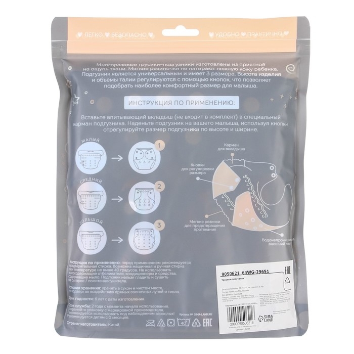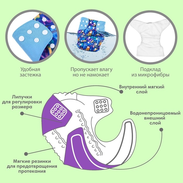 • Подгузник имеет удобный кармашек для вкладыша;